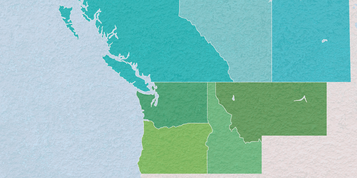 Washington, Oregon, Idaho, Montana, Saskatchewan, Alberta, and British Columbia